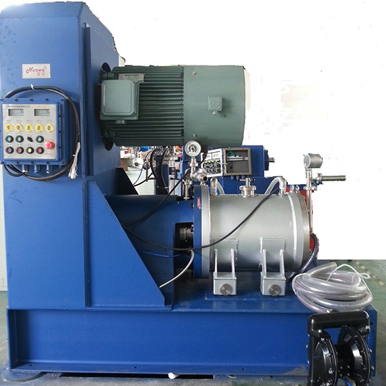 諾瓦NNM納米砂磨機,采用雙端面機械密封,可使用研磨介質。物料隨進料泵由頂端進入研磨腔,在強烈的研磨過程中,棒銷和定子對研磨介質連續發生劇烈的撞擊,研磨介質再作用于物料,物料得到充分研磨,在出料口,由于密度不同,研磨介質返回研磨腔,物料卻在進料泵壓力作用下經縫隙分離器流出研磨腔。大流量循環往復的操作模式,確保物料在研磨腔體內短停留時間,多遍數通過,從而得到納米級產品粒徑分布。